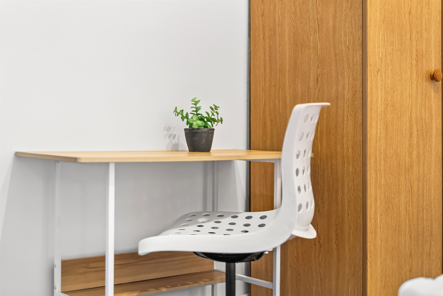 Bedroom 1: King-size zip & link bed (can be separated into two singles) with ergonomic workspace desk and chair